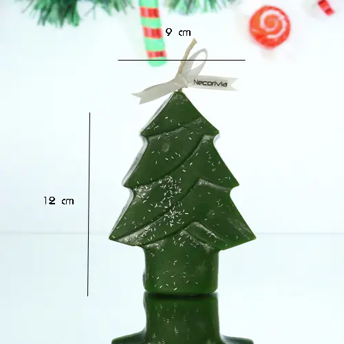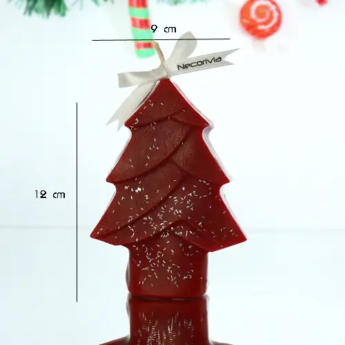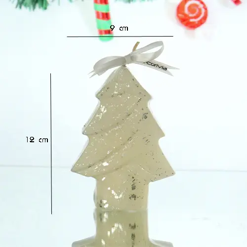 Christmas tree-shaped candles in green, white, and red with silver accents and ribbon bows.Christmas tree candle-Decoration Candle